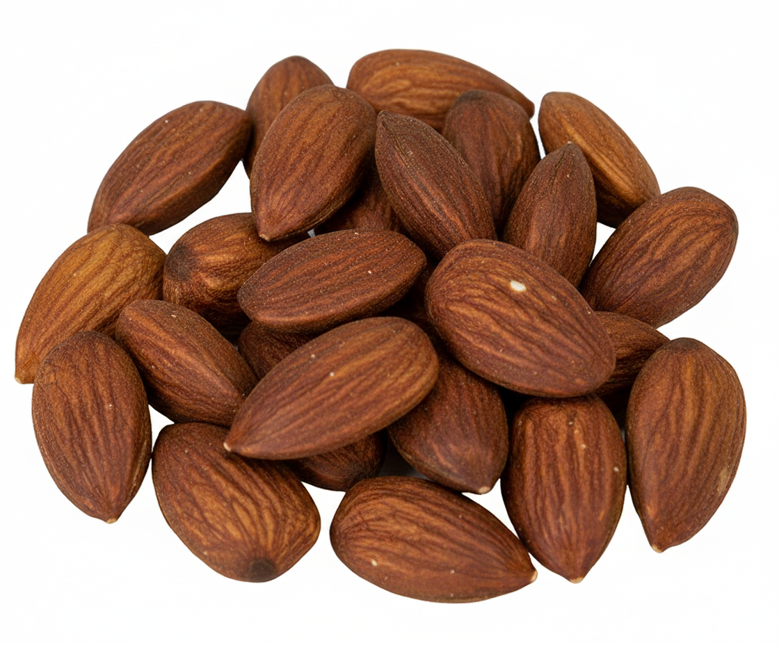 Migdał typ "carmel" - w ich składzie znajduje się witamina E, B2, B3 oraz B9. Można spożywać je na surowo jako przekąskę bądź dodawać do musli, ciast, śniadań czy innych deserów.