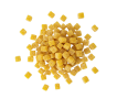 Owocowe kostki cytrynowe powstają wyłącznie z naturalnych składników. Słodycz pochodzi z jabłkowego koncentratu, a przyjemny, orzeźwiający smak to zasługa wysokiej zawartości pulpy i soku z cytryny. Naturalna pektyna owocowa odpowiada za miękką i sprężystą strukturę, a dodatek skrobi kukurydzianej zapobiega sklejaniu się kostek.
