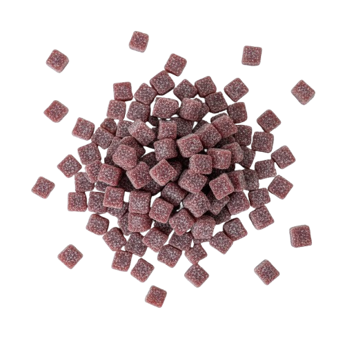 Wszystkie składniki są starannie dobierane, a proces produkcji opiera się na minimalnej obróbce, co pozwala zachować naturalną strukturę i kolor owoców. Pektyna owocowa zapewnia kostkom miękką, sprężystą konsystencję, a skrobia kukurydziana zapobiega ich sklejaniu. Dzięki temu każda kostka jest idealnie gładka i apetyczna.